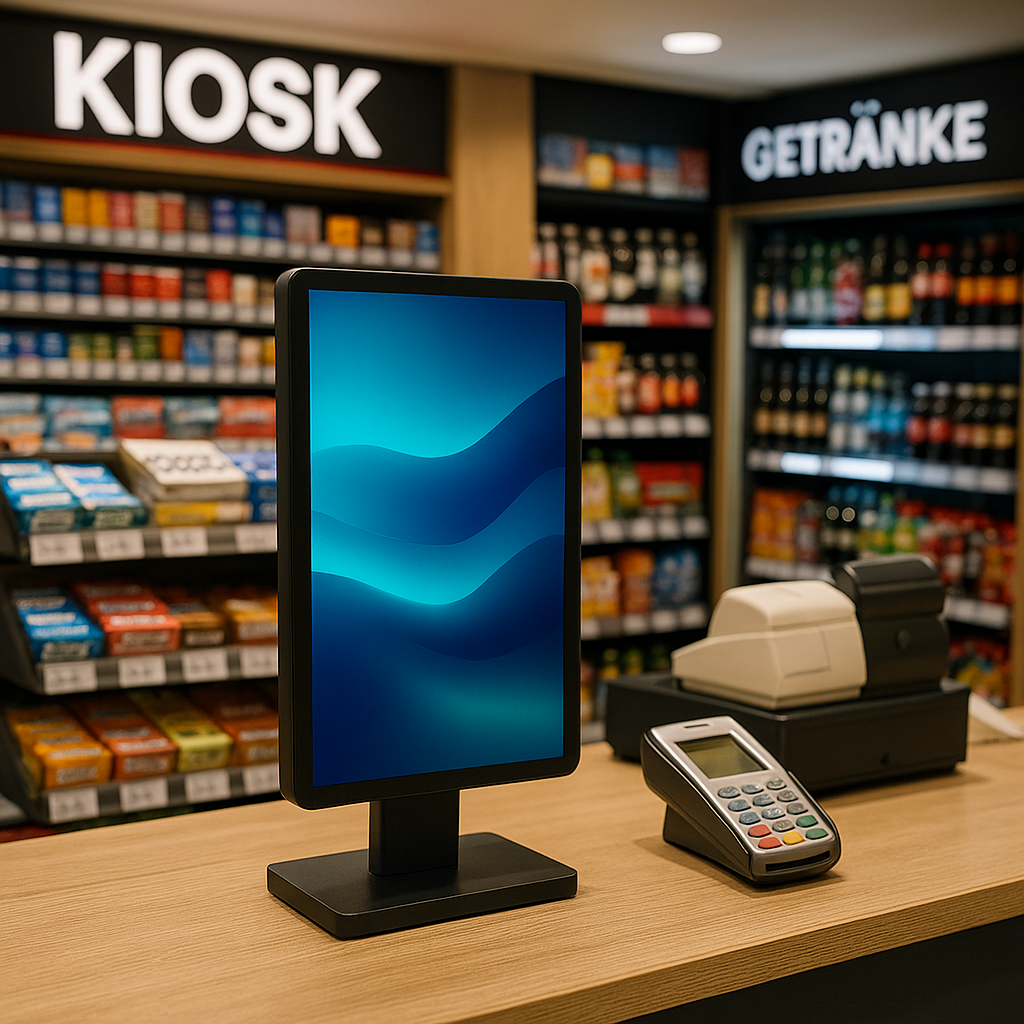 Mit dem eleganten Smart LCD Bildschirm ist Ihre Werbung immer zur richtigen Zeit am richtigen Ort sichtbar – beim Betreten der Annahmestelle, während des Einkaufsvorgangs und natürlich direkt an der Kasse.