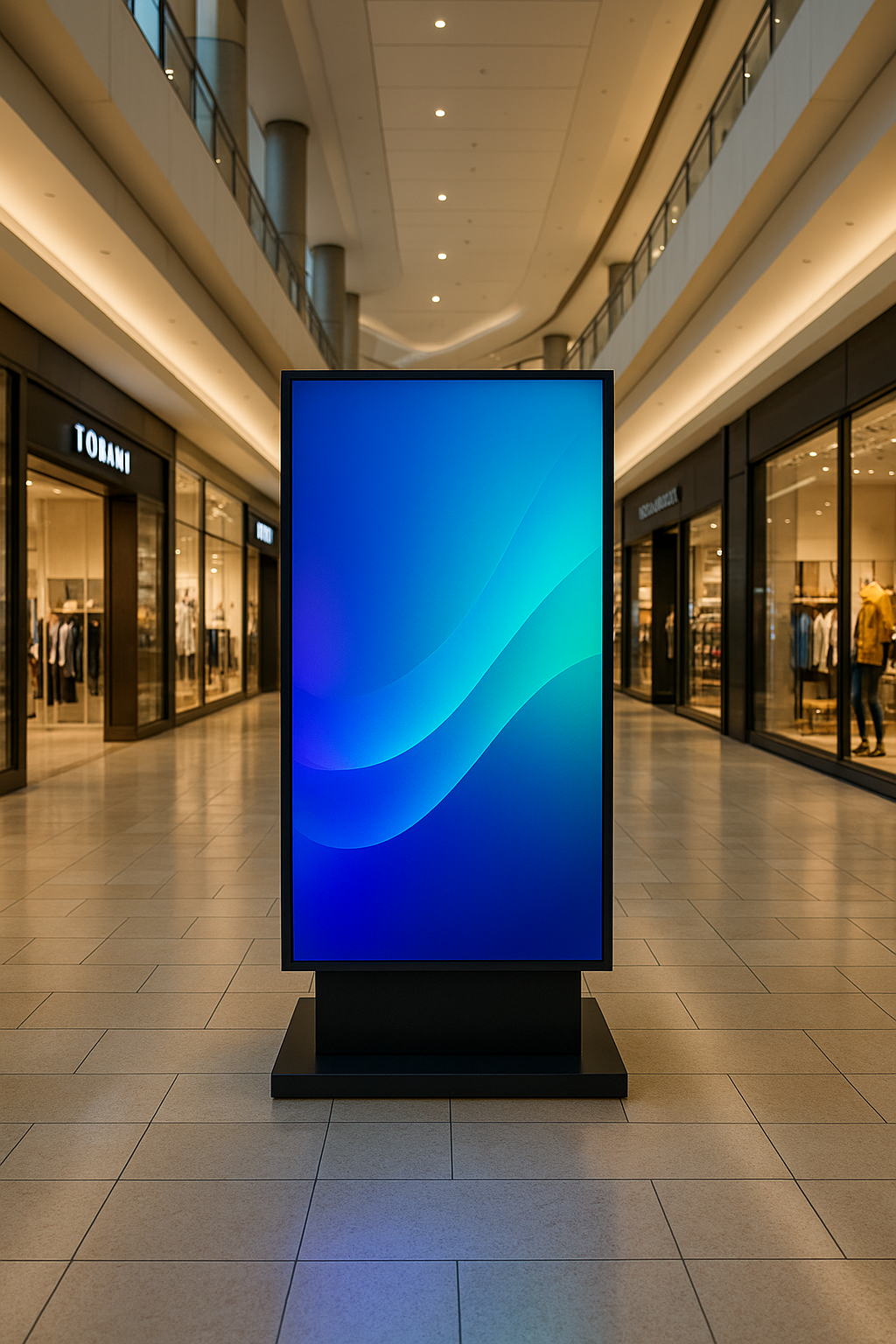 Ein digitaler Werbescreen im Einkaufszentrum präsentiert Ihre Werbung direkt am Point of Sale – modern, aufmerksamkeitsstark und flexibel anpassbar für maximale Sichtbarkeit Ihrer Marke.